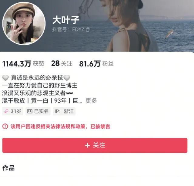 大叶子抖音已被禁言